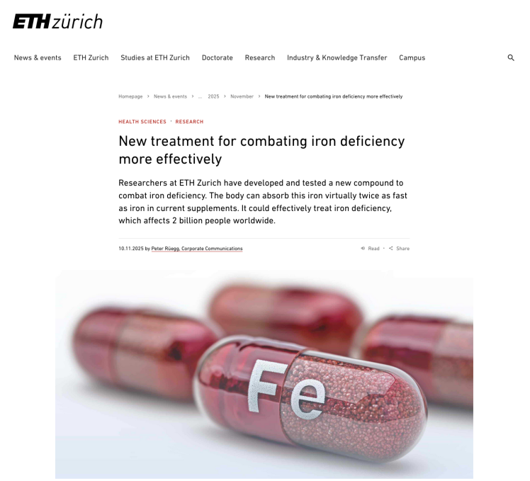 Our work on oat protein nanofibril - iron hybrids for conbating iron-deficiency anemia was reported by ETH News.