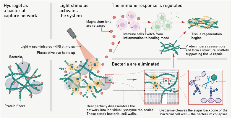 Our work Photo-reversible Amyloid NanoNETs for Regenerative Antimicrobial Therapies is reported by ETH News, bionity.